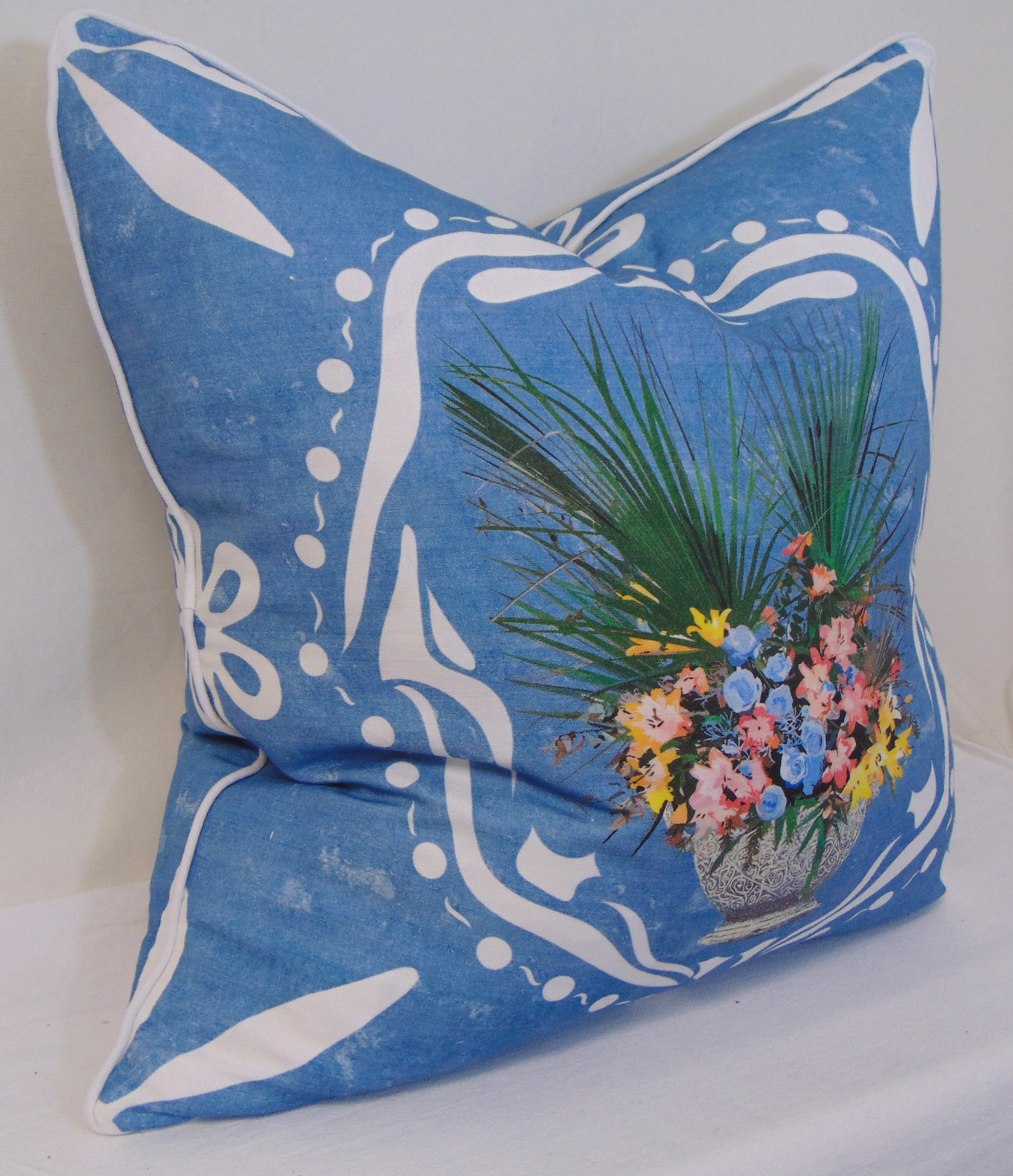 Limited Edition Charleston Bouquet Denim Blue Pillow Cover With Welt