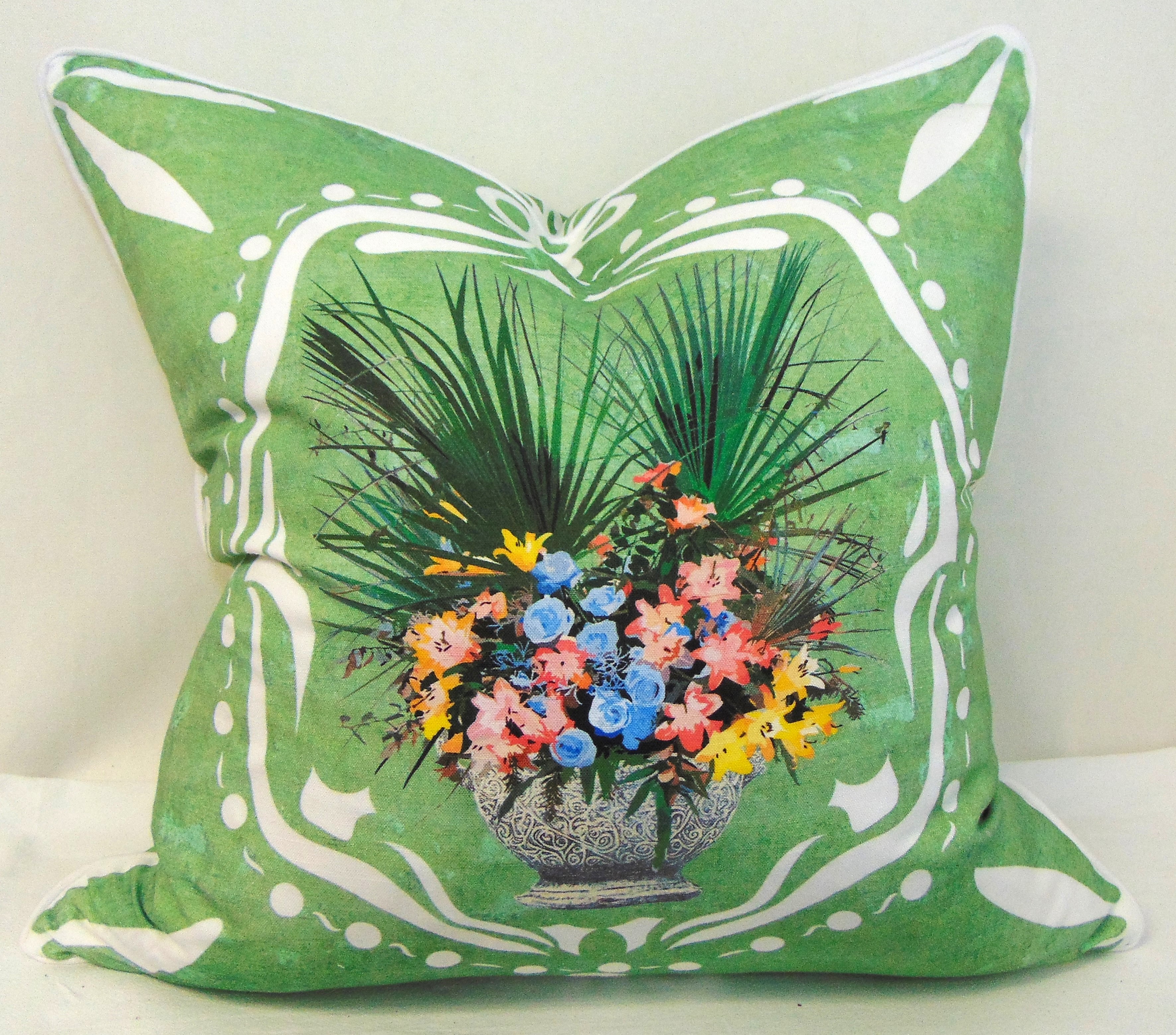 Limited Edition Charleston Bouquet Green Blue Pillow Cover With Welt