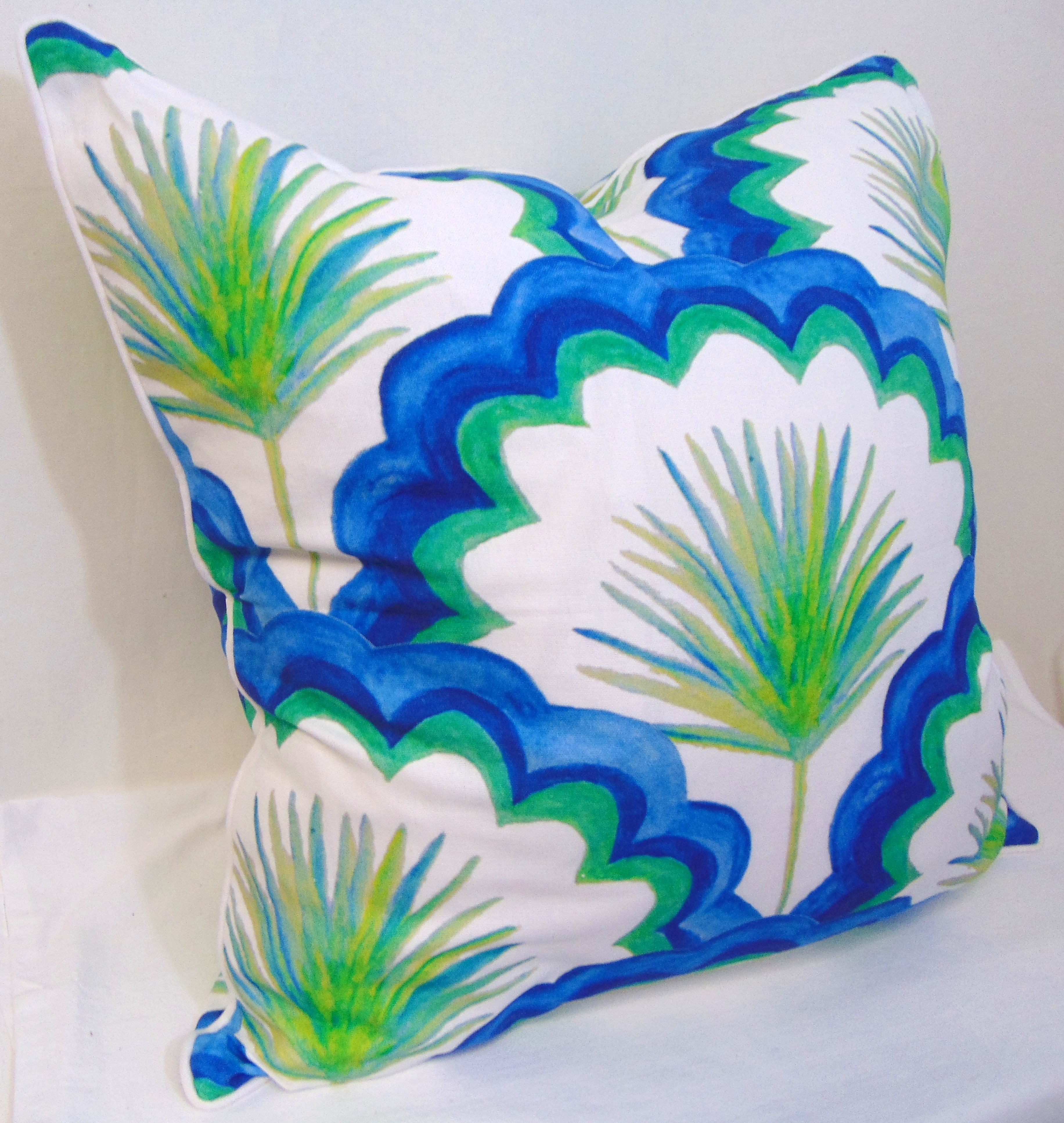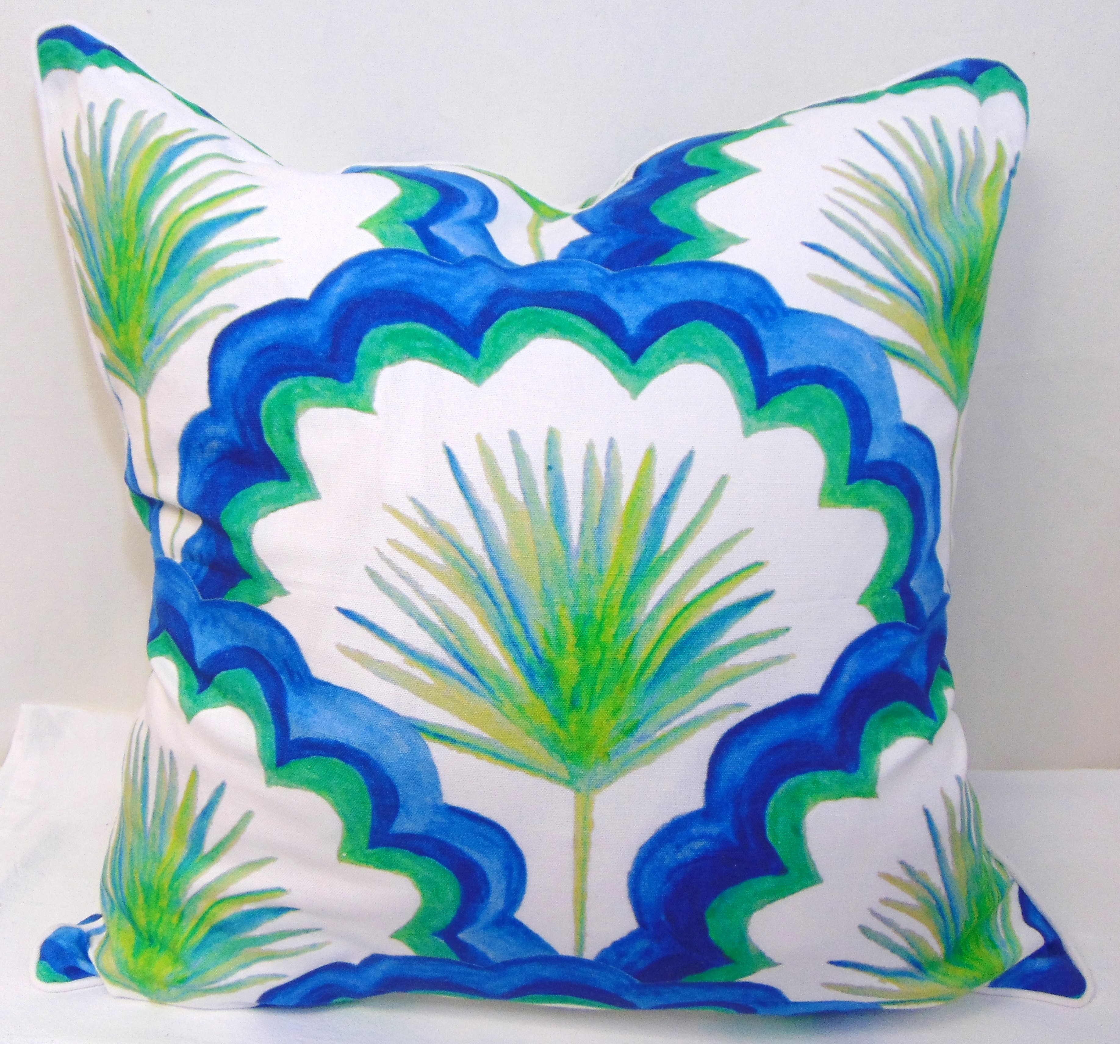 Limited Edition Lace and Fronds Blue/Green Pillow Cover With Welt