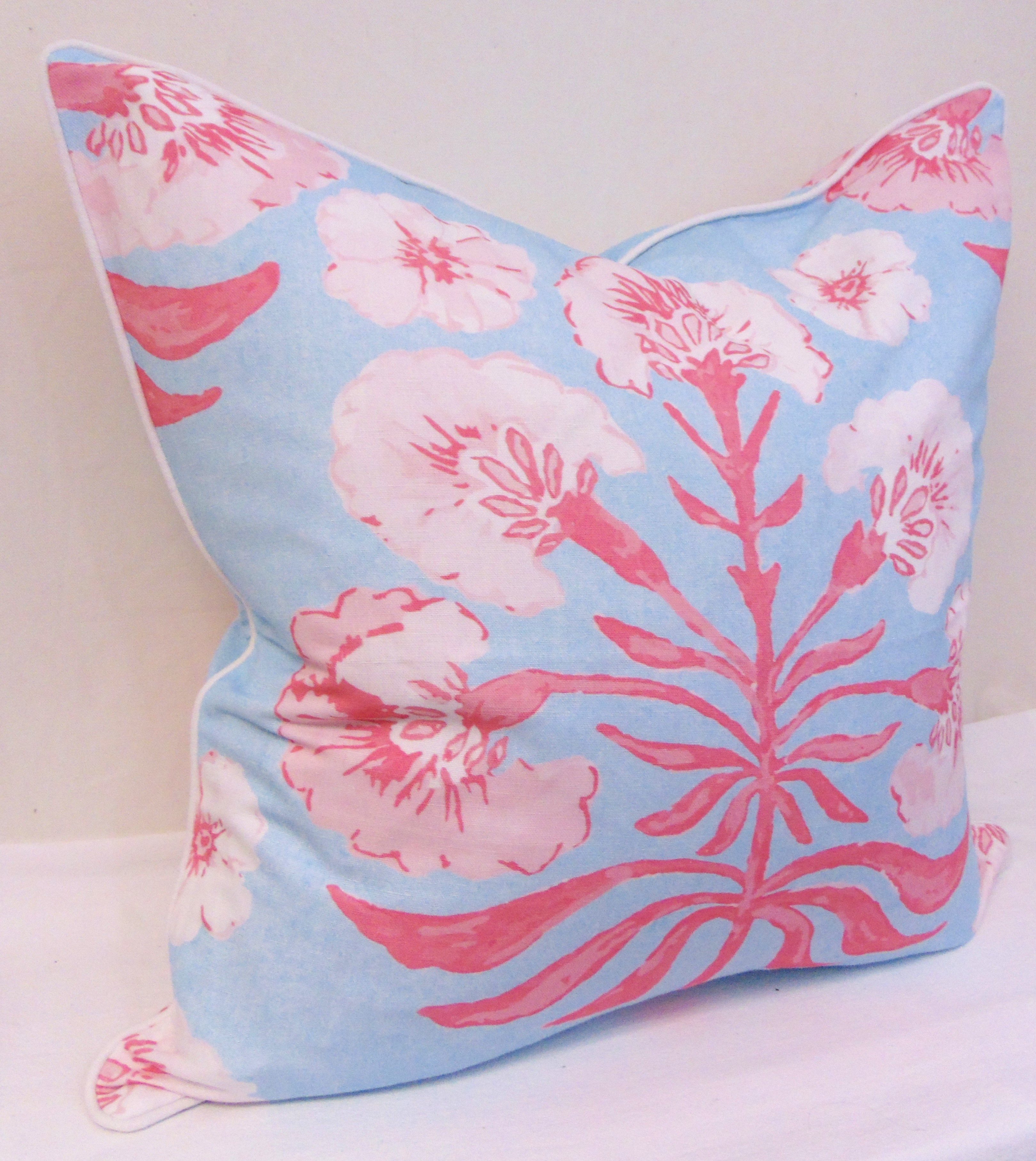 Limited Edition Poppy Love Pink/Blue Pillow Cover With Welt