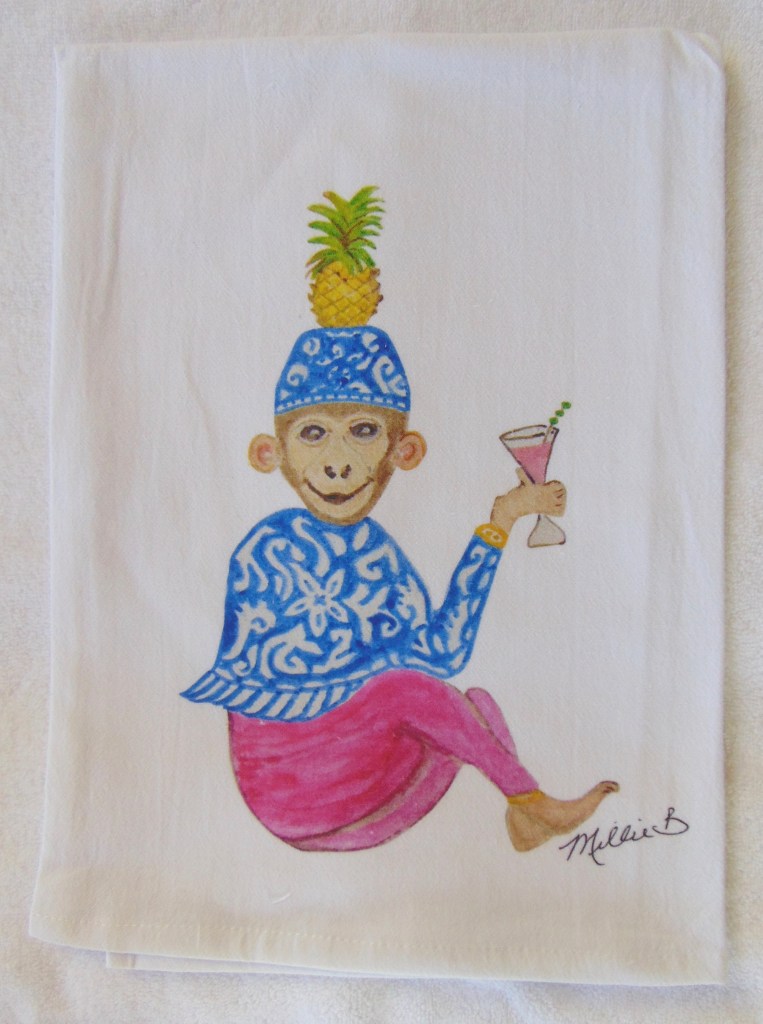 Limited edition Watercolor Betty Anne print on white flour sack towel. Our high quality crinkled cotton is one of the most desirable fibers used for kitchen towels. 100% cotton dish towels are absorbent and don’t leave behind lint or other residue when drying dishes. We’ve designed a semi-custom full of a variety of design genres, such as, urban, coastal and pet themed flour sack towels. Consequently, you will have the luxury of selecting the paint color that is most suitable for your decor on your personalized flour sack towel. Our printed cotton towels have been featured in Coastal Living Magazine, Anthropologie, Birch Lane stores and many other popular retailers.