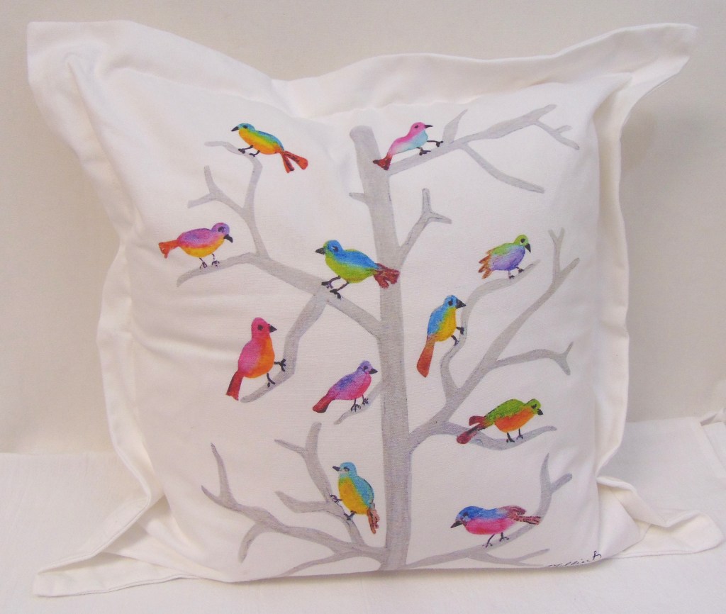 Limited Edition Watercolor Birdies on White Heavy Cotton Canvas