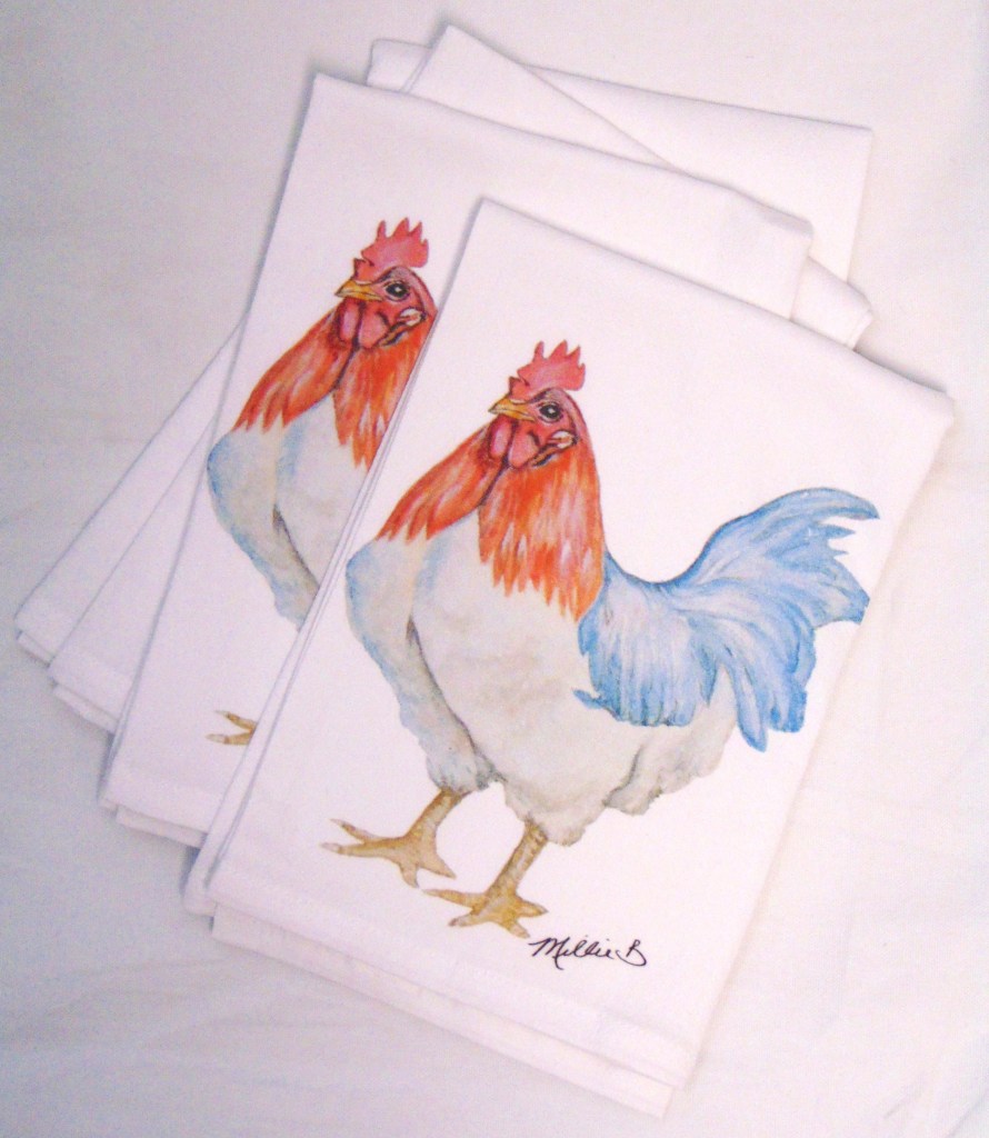 Limited edition Watercolor French Country print on white flour sack napkins. Our high quality crinkled cotton is one of the most desirable fibers used for dinner napkins. 100% cotton dinner napkins are absorbent and more so when washed. We’ve designed a semi-custom line full of a variety of design genres, such as, urban, coastal and pet themed kitchen towels. Consequently, you will have the luxury of selecting the paint color that is most suitable for your decor. Our printed cotton napkins have been featured in Coastal Living magazine, Anthropologie, Birch Lane stores and many other popular retailers.