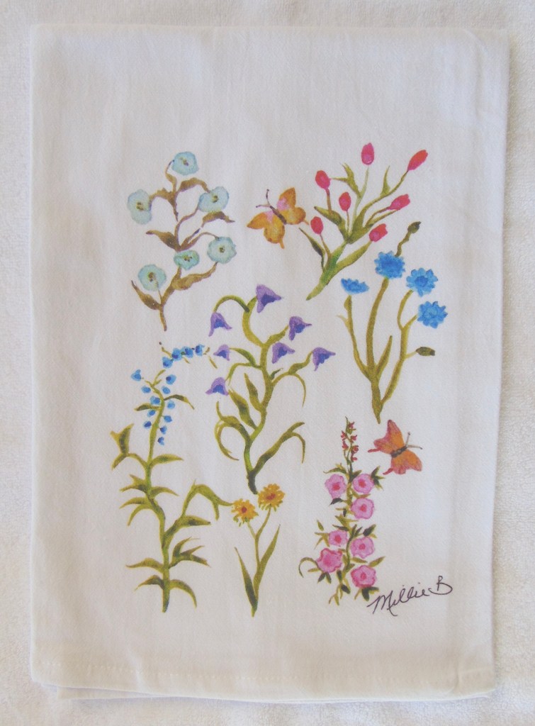 Limited edition Watercolor Garden Party print on white flour sack towel. Our high quality crinkled cotton is one of the most desirable fibers used for kitchen towels. 100% cotton dish towels are absorbent and don’t leave behind lint or other residue when drying dishes. We’ve designed a semi-custom full of a variety of design genres, such as, urban, coastal and pet themed flour sack towels. Consequently, you will have the luxury of selecting the paint color that is most suitable for your decor on your personalized flour sack towel. Our printed cotton towels have been featured in Coastal Living Magazine, Anthropologie, Birch Lane stores and many other popular retailers.