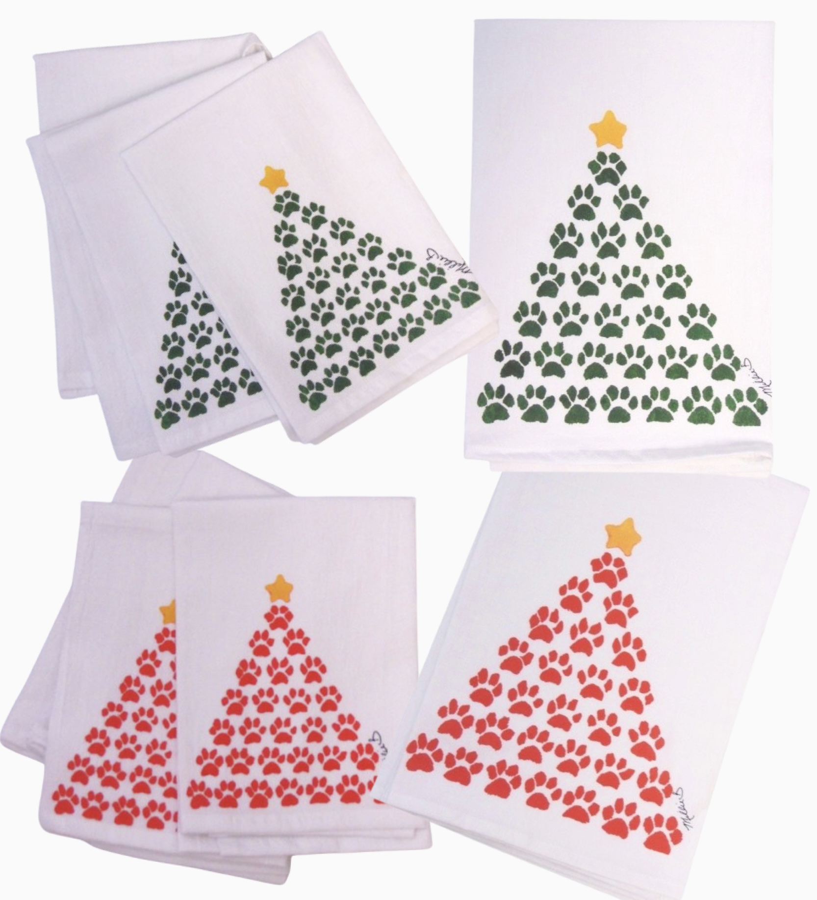 Limited edition Watercolor Green Paw Tree print on white flour sack towel. Our high quality crinkled cotton is one of the most desirable fibers used for kitchen towels. 100% cotton dish towels are absorbent and don’t leave behind lint or other residue when drying dishes. We’ve designed a semi-custom full of a variety of design genres, such as, urban, coastal and pet themed flour sack towels. Consequently, you will have the luxury of selecting the paint color that is most suitable for your decor on your personalized flour sack towel. Our printed cotton towels have been featured in Coastal Living Magazine, Anthropologie, Birch Lane stores and many other popular retailers.