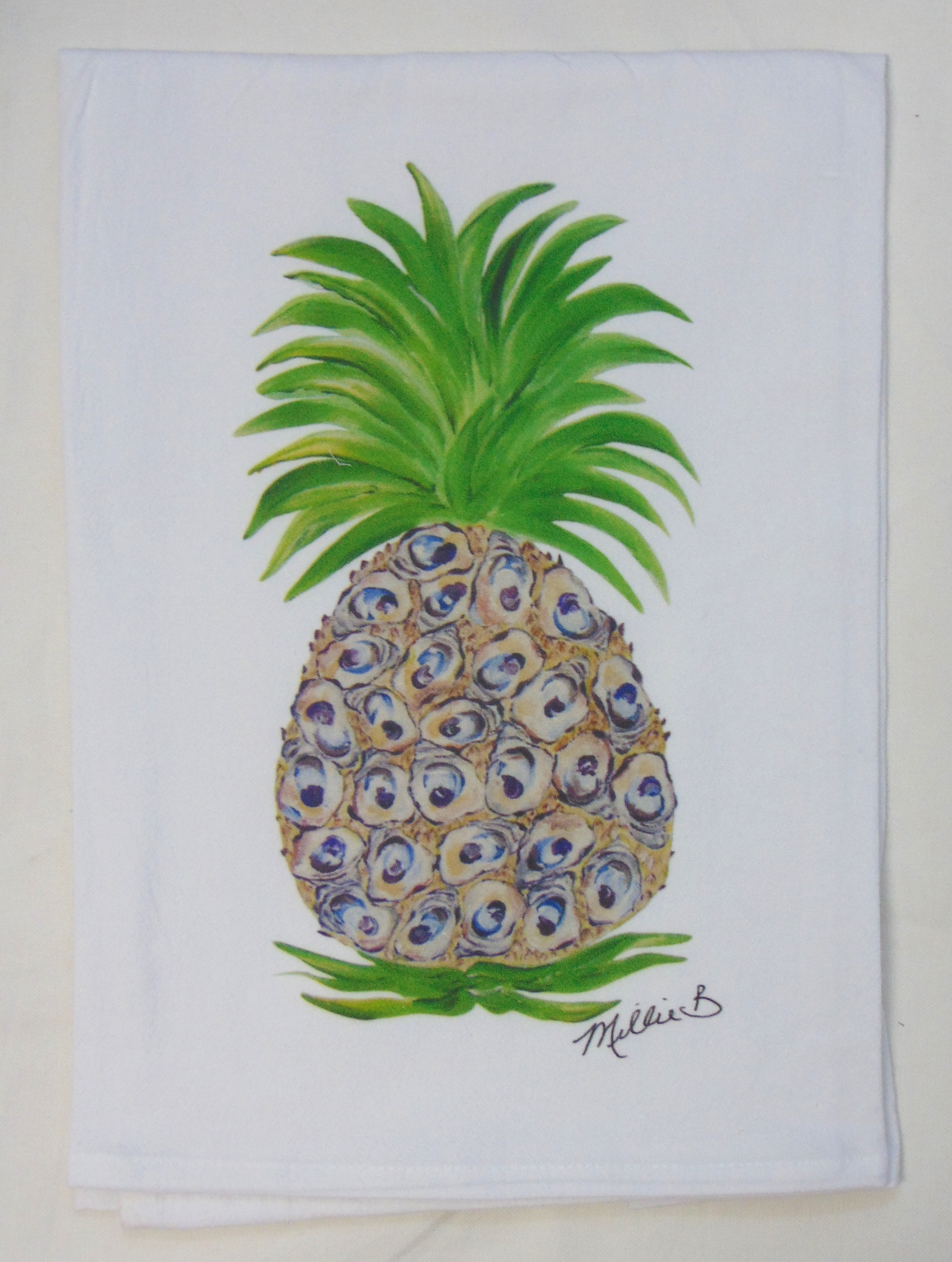 Limited Edition Watercolor Oyster Shell Pineapple Print Flour Sack Towel