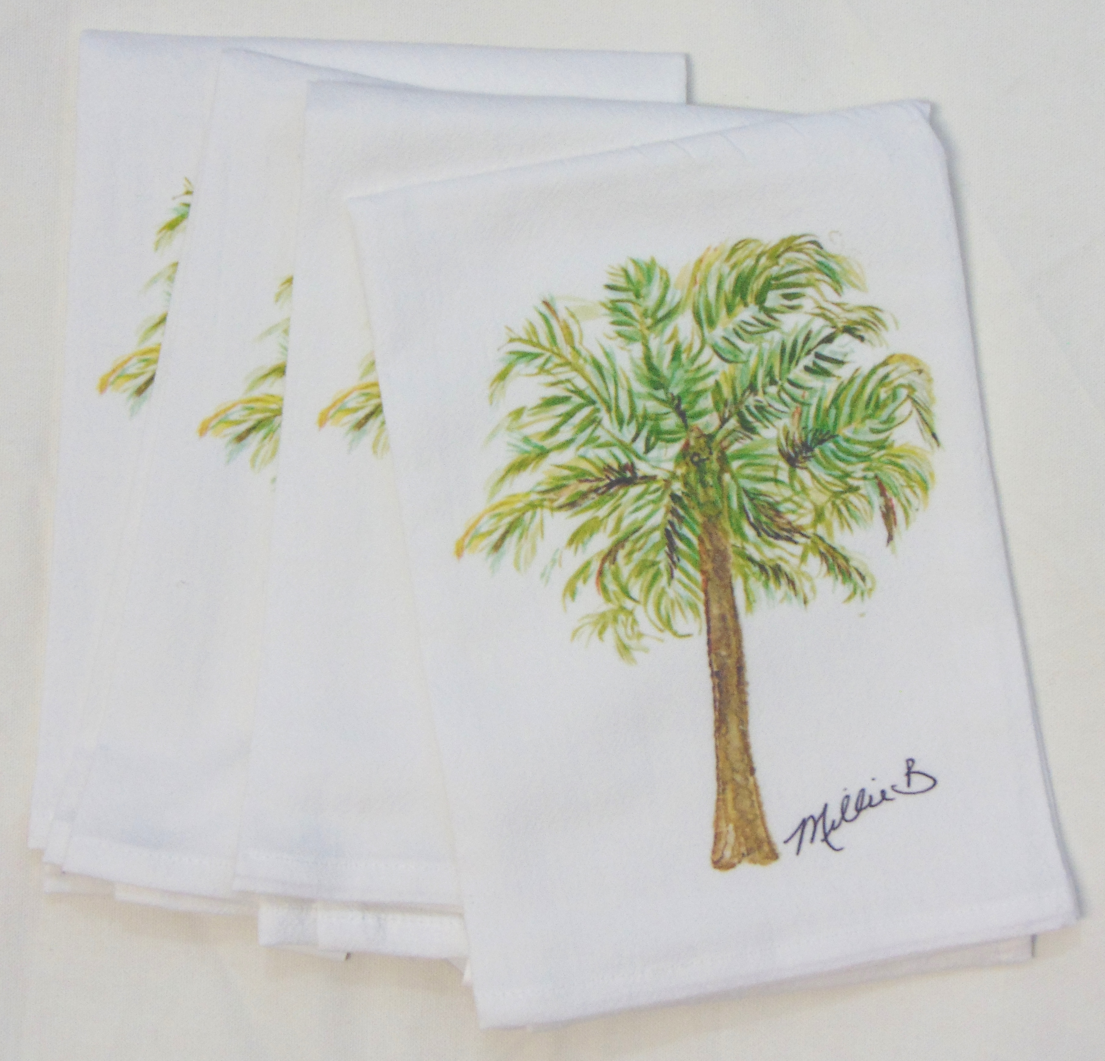 Limited Edition Watercolor Palm Tree Print White Flour Sack Napkins