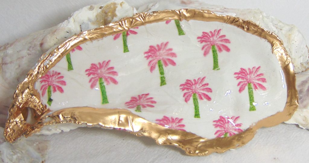 Palm Tree Miniprint Oyster Shell Jewelry Bowl