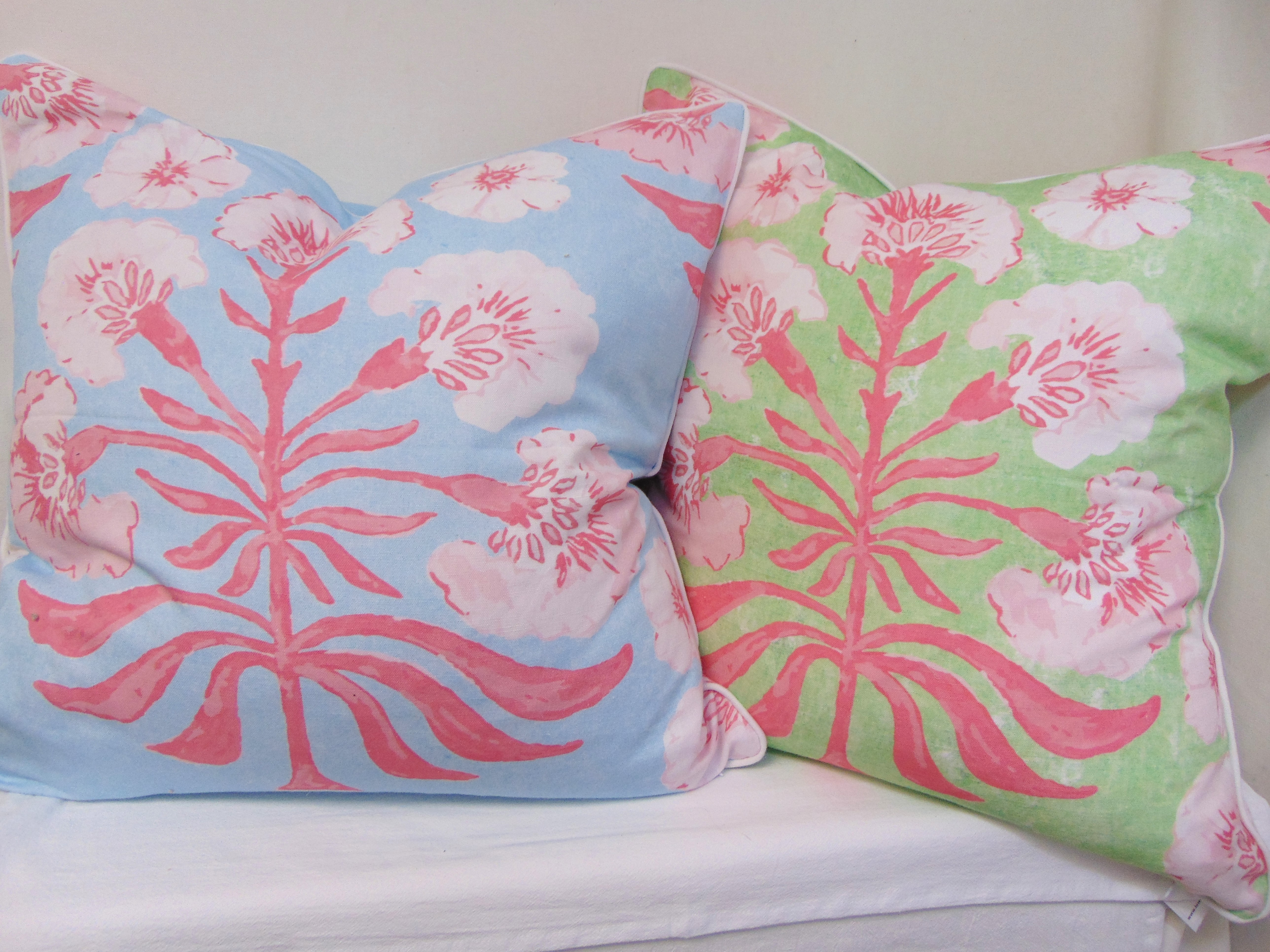 Lowcountry Linens watercolor print decorative pillows featuring designs created by watercolor artist and founder, Millie Burke. These pillows are made from linen and cotton, and feature zipper closures, welt and measure at 22″ x 22″. These will add a pop of color to any room in your home! We recommend a 25″ x 25″ insert, or 26″ x 26″ for a fuller look.