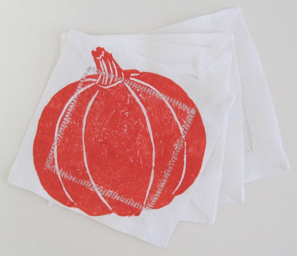 Pumpkin on White Linen Cocktail Napkins