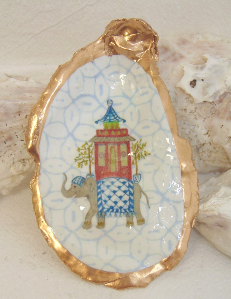 Watercolor Elephant Pagoda Oyster Shell Jewelry Bowl