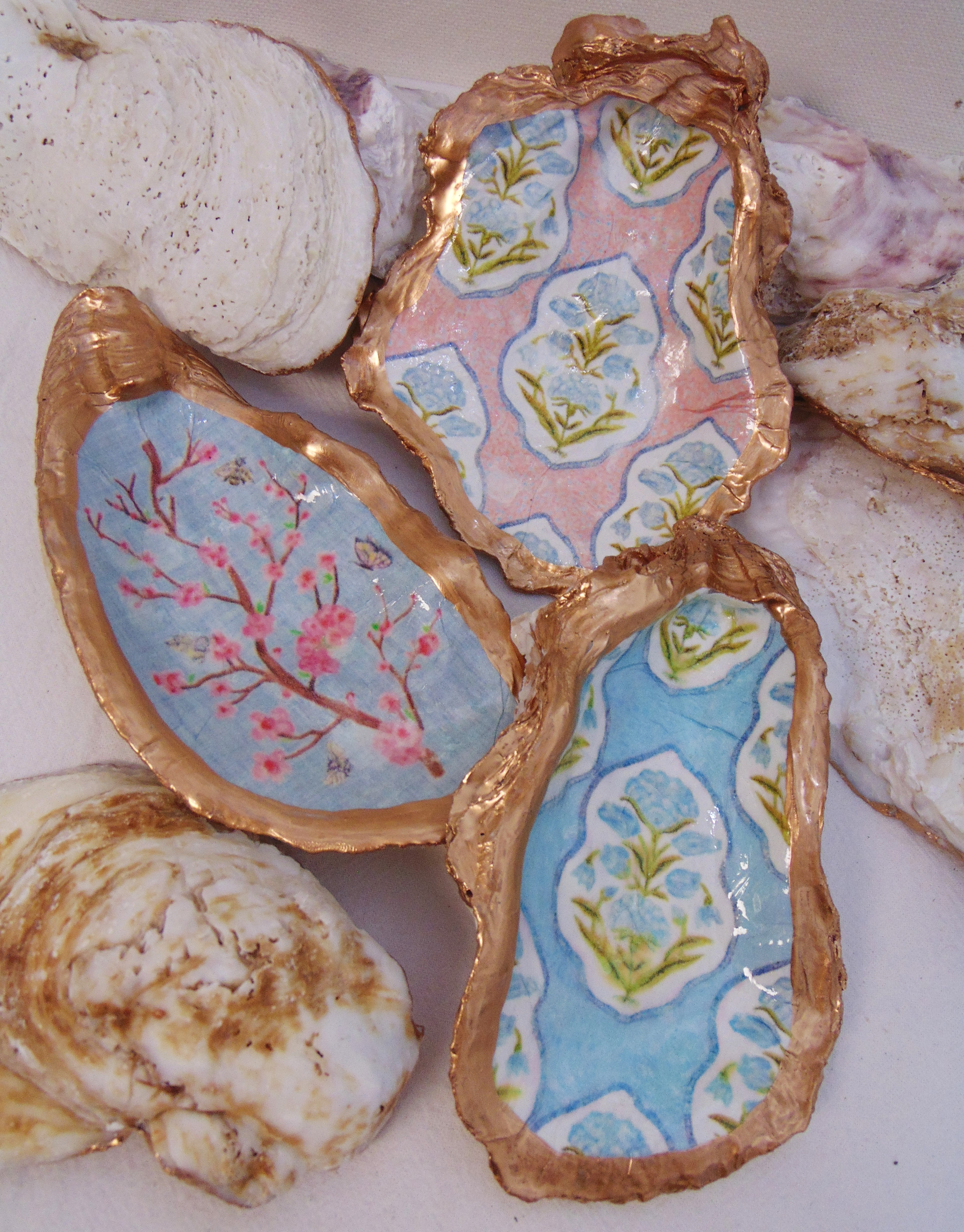 Watercolor Folly Poppy Blue Oyster Shell Jewelry Bowl
