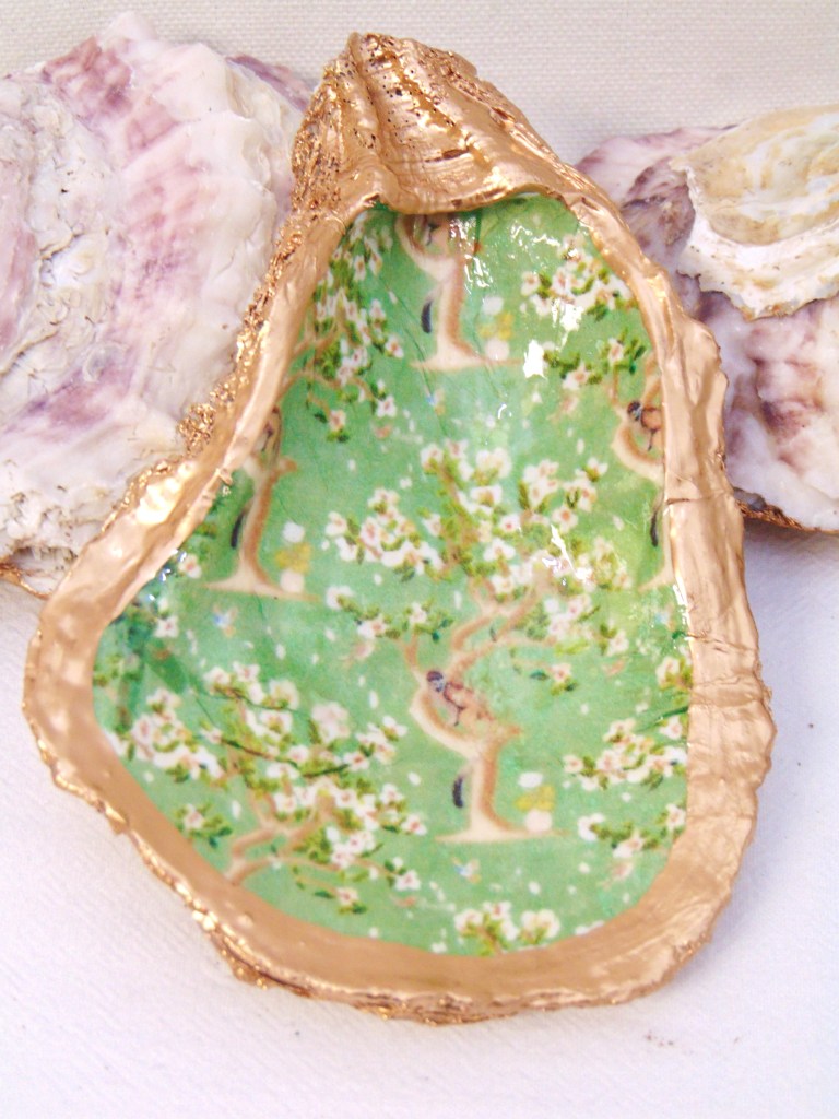 Watercolor Hanami Whimsy Olive Oyster Shell Jewelry Bowl