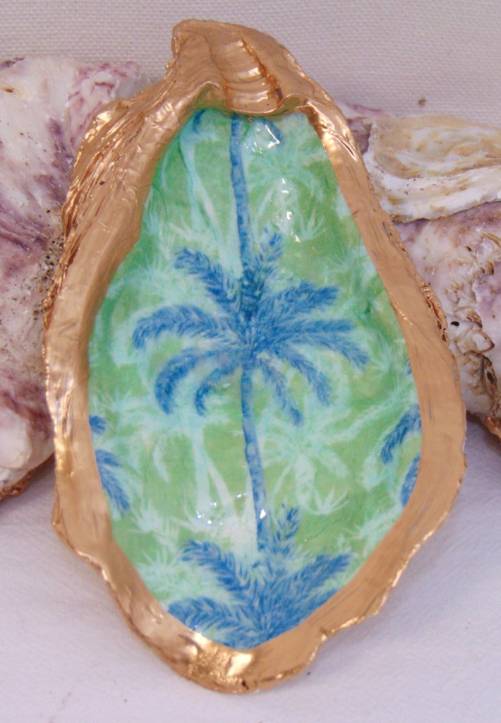 Watercolor Palm Beach Green Oyster Shell Jewelry Bowl