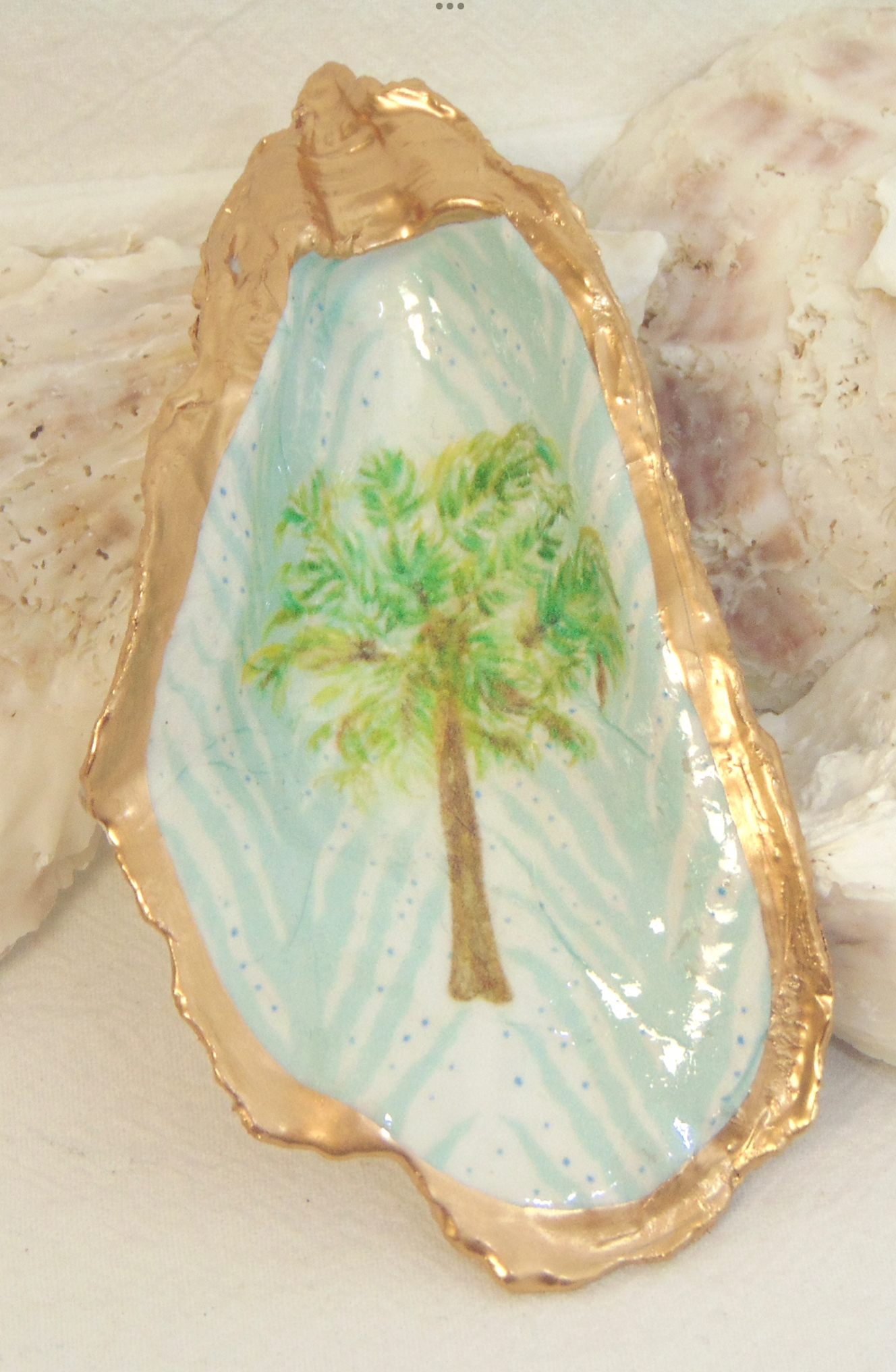 Watercolor Palm Tree Oyster Shell Jewelry Bowl