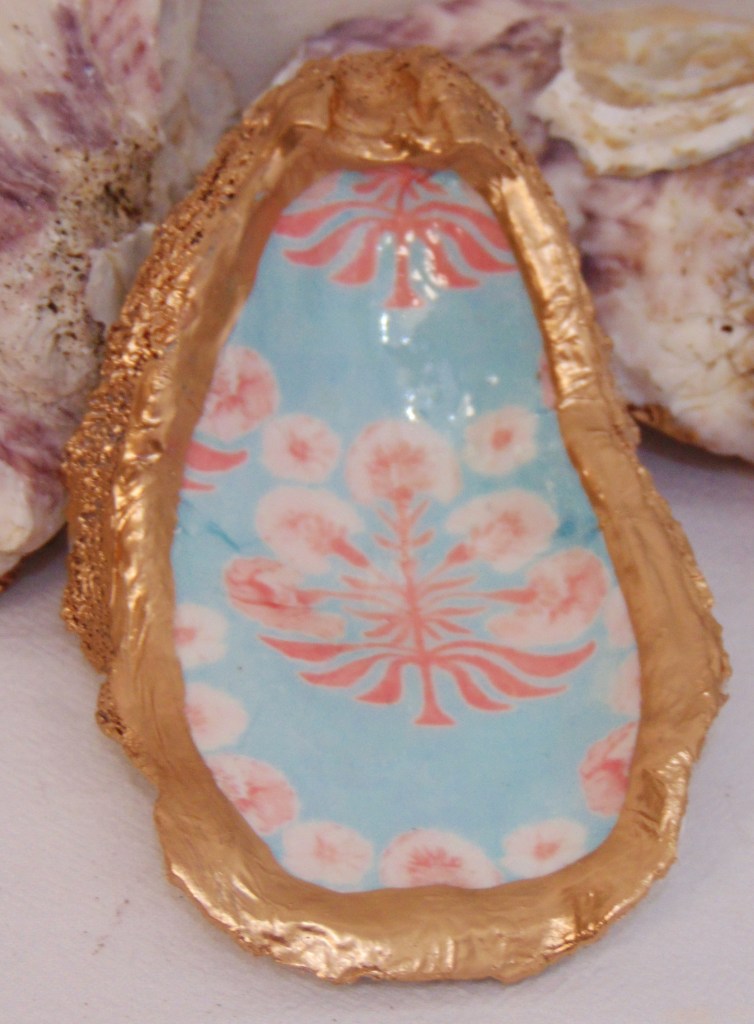 Watercolor Poppy Love Pink Blue Oyster Shell Jewelry Bowl
