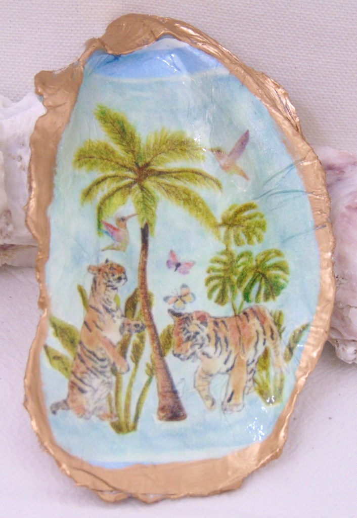 Watercolor Tigers Oyster Shell Jewelry Bowl